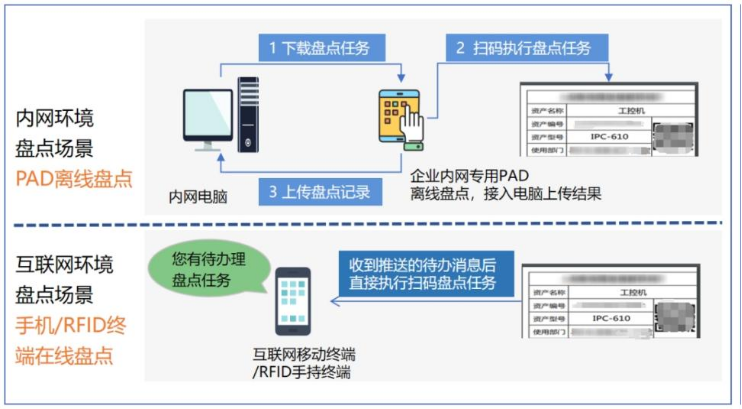 移動(dòng)智能應(yīng)用:通過RFID等智能標(biāo)簽和智能手持終端設(shè)備,實(shí)現(xiàn)在資產(chǎn)現(xiàn)場的快速數(shù)據(jù)采集,實(shí)現(xiàn)智能范圍管控和資產(chǎn)快速盤點(diǎn)。