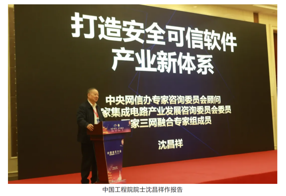 在大會報告環(huán)節(jié),沈昌祥院士作題為《打造安全可信軟件產業(yè)體系》的報告。提出了智能時代網絡安全面臨的嚴重威脅,指出了打造自主創(chuàng)新、安全可信的網絡安全產業(yè)的技術路徑。