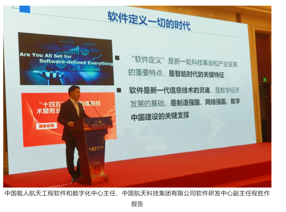中國載人航天工程軟件和數(shù)字化中心主任、中國航天科技集團有限公司軟件研發(fā)中心副主任程勝作題為《構建航天軟件研制新體系——打造航天軟件新質生產力》的報告。闡述了國內外軟件行業(yè)發(fā)展概況以及我國航天軟件面臨的嚴峻形勢和挑戰(zhàn),提出了建立智能時代航天軟件研制新體系的戰(zhàn)略規(guī)劃和體系規(guī)劃。