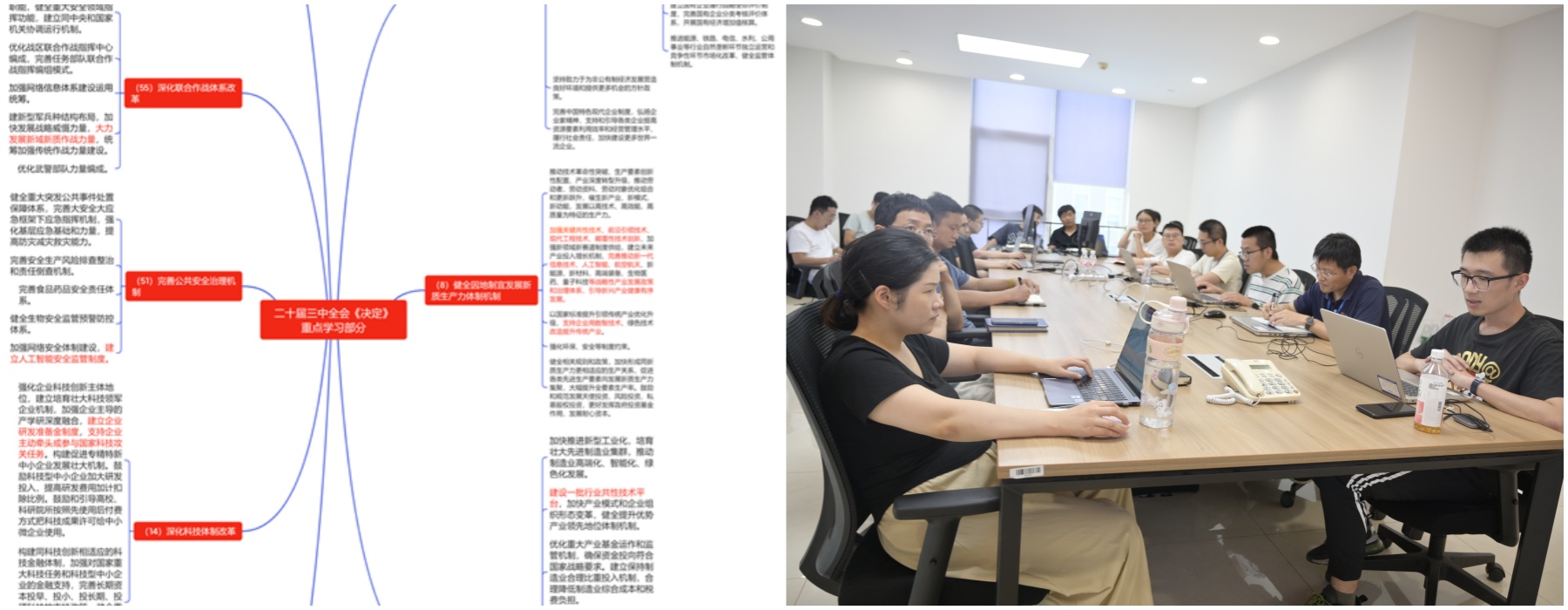 第十黨支部堅(jiān)持學(xué)以致用、學(xué)用結(jié)合,用全會(huì)精神指導(dǎo)公司改革發(fā)展實(shí)踐,以實(shí)際行動(dòng)把全會(huì)精神落到實(shí)處。支部書(shū)記逐章逐條認(rèn)真研讀《中共中央關(guān)于進(jìn)一步全面深化改革、推進(jìn)中國(guó)式現(xiàn)代化的決定》全文,結(jié)合學(xué)習(xí)理解,梳理與公司改革發(fā)展和業(yè)務(wù)拓展緊密相關(guān)章節(jié),增加關(guān)鍵點(diǎn)標(biāo)注和注解,摘編形成8700余字的“強(qiáng)相關(guān)”內(nèi)容,組織支部全體黨員認(rèn)真學(xué)習(xí),確保全會(huì)精神入腦入心入行,同時(shí)還要求做好理論學(xué)習(xí)與工作推進(jìn)兩手抓兩促進(jìn),確保學(xué)習(xí)成果通過(guò)實(shí)干取得實(shí)實(shí)在在的成效。學(xué)習(xí)完畢后,黨員同志們圍繞文件精神,結(jié)合各自的本職工作,進(jìn)行了深入的討論交流,進(jìn)一步統(tǒng)一思想、凝聚共識(shí),將學(xué)習(xí)成果轉(zhuǎn)化為推動(dòng)工作的強(qiáng)大動(dòng)力。