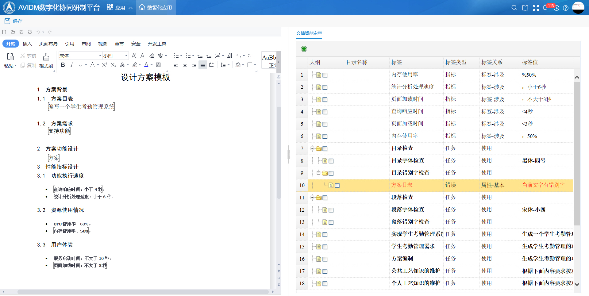 調(diào)用DeepSeek大模型的指標抽取與分析能力, 通過在系統(tǒng)中內(nèi)置合規(guī)性規(guī)則庫(如結(jié)構(gòu)設(shè)計文件檢查規(guī)則、工藝設(shè)計文件檢查規(guī)則等),以及各種文檔模板的格式規(guī)范性要求,自動檢查文檔的格式規(guī)范性、內(nèi)容完整性和邏輯矛盾,支持多文件關(guān)聯(lián)審核。