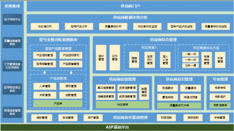全級次供應(yīng)商管理系統(tǒng)按照對供應(yīng)商“全領(lǐng)域、全級次、全過程和全要素”管理的要求,以實現(xiàn)“全領(lǐng)域、全級次、全過程、全要素”覆蓋的供應(yīng)商管理工作為目標,對供應(yīng)商管理活動中產(chǎn)生的各類信息進行統(tǒng)一歸集與管理。系統(tǒng)通過供應(yīng)商信息管理、綜合管理、型號/產(chǎn)品數(shù)字結(jié)構(gòu)管理、決策分析等功能模塊,實現(xiàn)對供應(yīng)商全生命周期過程管理和各類信息的管理管控。通過系統(tǒng)的實施,可實現(xiàn)供應(yīng)商管理業(yè)務(wù)的 “信息服務(wù)、業(yè)務(wù)支撐、決策支持、風險管控”,不斷提升企業(yè)供應(yīng)鏈現(xiàn)代化水平。