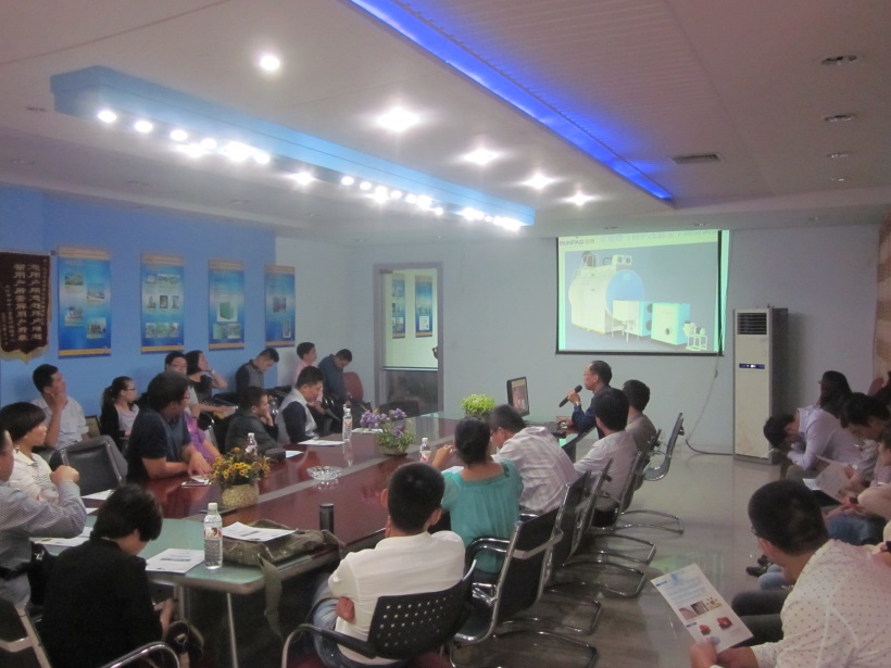 華源前線總經(jīng)理徐國富、常務副總經(jīng)理張建民、營銷部經(jīng)理梁仁泉、新能源事業(yè)部經(jīng)理金鳴等人參加了本次活動。各位學員對我公司在低碳、新能源方面的各項產(chǎn)品興趣濃厚,特別對我公司生物質鍋爐的各類產(chǎn)品提出各自關心的問題。我公司的生物質鍋爐,利用各種生物質能源作為鍋爐燃料,具有效率高、二氧化碳0排放、灰渣量少、燃料適應性廣等特點。