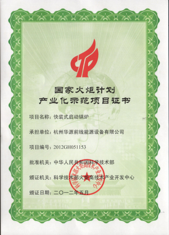 近日,杭州華源前線能源設備有限公司榮獲2014年度浙江杭州塘棲鎮“重點骨干企業”的榮譽等稱號。在全球經濟環境不景氣的2013年,我們用辛勤的汗水和智慧取得了重要業績,團結一致,披荊斬棘,努力拼搏,如期完成了2013年公司各項經濟指標。勇敢的華源人用智慧與汗水,又一次成功挑戰了2013年,迎來了充滿朝氣的2014! 與此同時,“快裝式電站輔助鍋爐”項目成功列入2013年度國家火炬計劃,獲得由科技部火炬高技術產業開發中心頒發的國家火炬計劃產業化示范項目證書,同時獲得政府獎勵資金。低熱值燃氣鍋爐產品被評定為省級新產品,由中共塘棲鎮委員會塘棲鎮人民政府頒發了榮譽證書,以資鼓勵。 回顧過去的一年里,我們在風雨中成長,在磨礪中進取。我們欣喜,我們感動,我們前進,我們更有毅力去戰勝一切艱難困苦,在我們面前的路雖然艱辛和曲折,但是我們有足夠的信心視這些為下一個奮斗的里程碑!