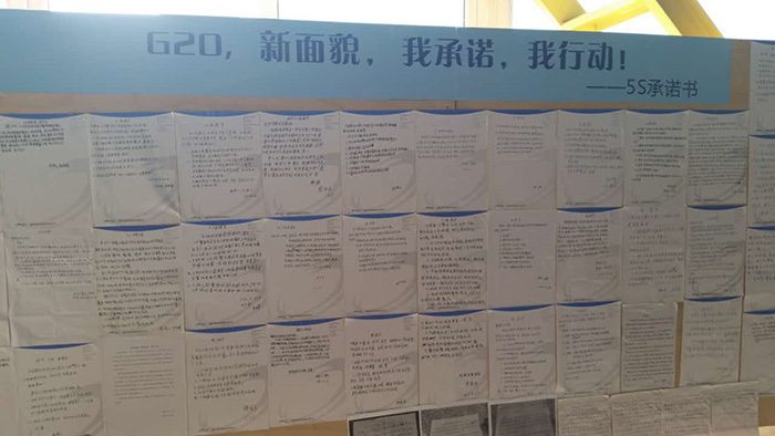 2016年9月,G20峰會即將在杭州召開,整個杭州在都在行動著,怎么能少了我們的參與。在華源前線,有這樣一群人,他們工作努力,辛勤勞累;快樂生活,積極樂觀。 “G20,新面貌,我承諾,我行動”的主題活動熱烈開展,安全征文、5S標兵及責任區整頓,從理論到實踐,動真格咯。5月16日活動成功拉開帷幕到6月底圓滿收官。 各個班組及個人,拿起12分的熱情,投入進來。看我們這干凈整齊的車間,就知道咱多用心啦。
