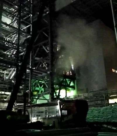 (鍋爐爐膛火焰明亮燃燒)