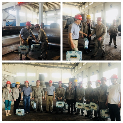 慰問組深入生產(chǎn)一線,詳細了解職工的生產(chǎn)生活、飲食衛(wèi)生和勞動保護等和情況,叮囑大家在工作時務(wù)必要注意身體健康和勞動安全。張建民代表公司員工感謝上級總工會的慰問,并匯報公司工會組織的防溫降暑工作,一是按照“抓兩頭、歇中間”的原則調(diào)整工作時間,控制室外作業(yè)時間和勞動強度;二是公司每天熬制綠豆湯和棒冰送到一線班組,特別配置的電冰箱確保員工能享用到工會準備的各種消暑用品,在辦公室內(nèi)還備用防中暑藥品,努力從全方位為員工創(chuàng)造安全、健康、清涼的工作環(huán)境,確保大家度過高溫炎熱的夏季。