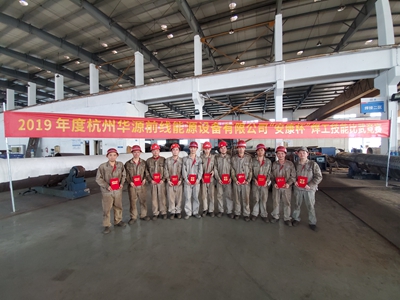 本次競賽是由杭州華源前線能源設備有限公司黨支部以及公司工會聯合組織的,共有33名一線焊工積極報名參加。華源前線特別組成由黨支部副書記、工會主席張建民擔任組長,焊接工程師、檢驗工程師、探傷工程師以及生產部代表共七人的評審委員會。比賽綜合理論知識考試和實踐操作成績,將參賽人員打亂順序重新編號后,由評審委員會集體評分產生各個獎項。
