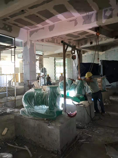 標準化觀摩的鍋爐房,無疑是內外兼修的樣板工程。以規范施工、合理布局為主線,目前鍋爐房內鍋爐本體已就位,水泵就位,管道鋪設中: