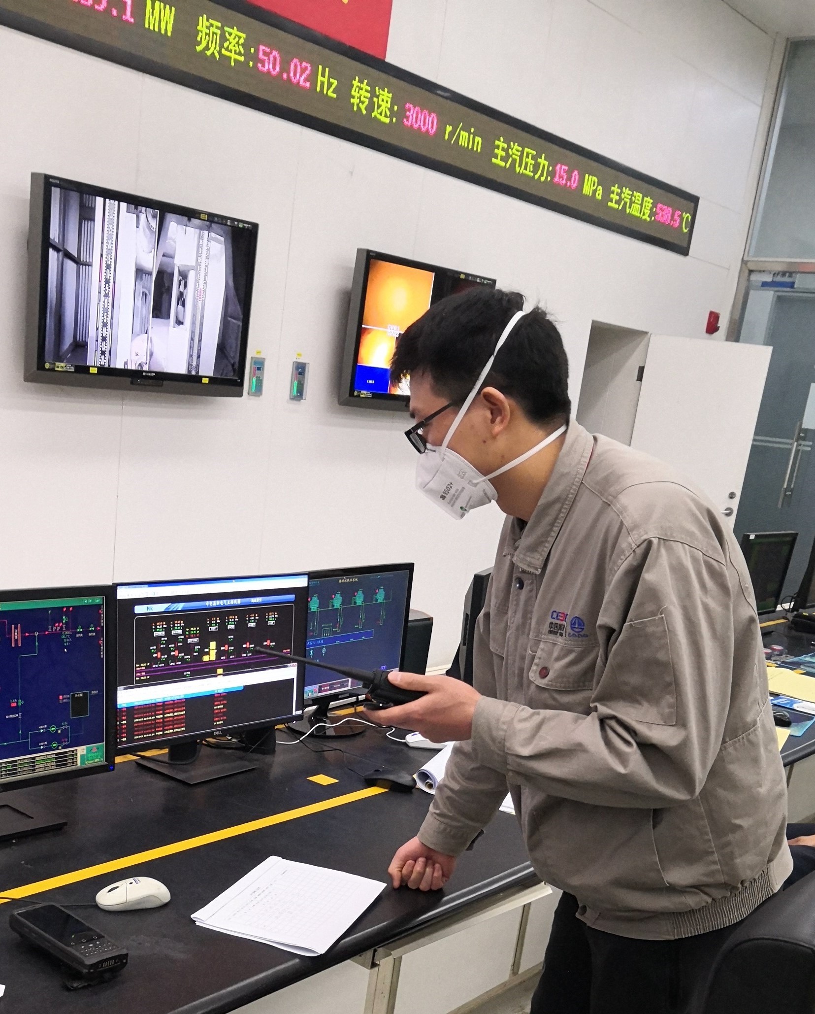 調試工程師阮拾萬在現場配合監視鍋爐運行參數