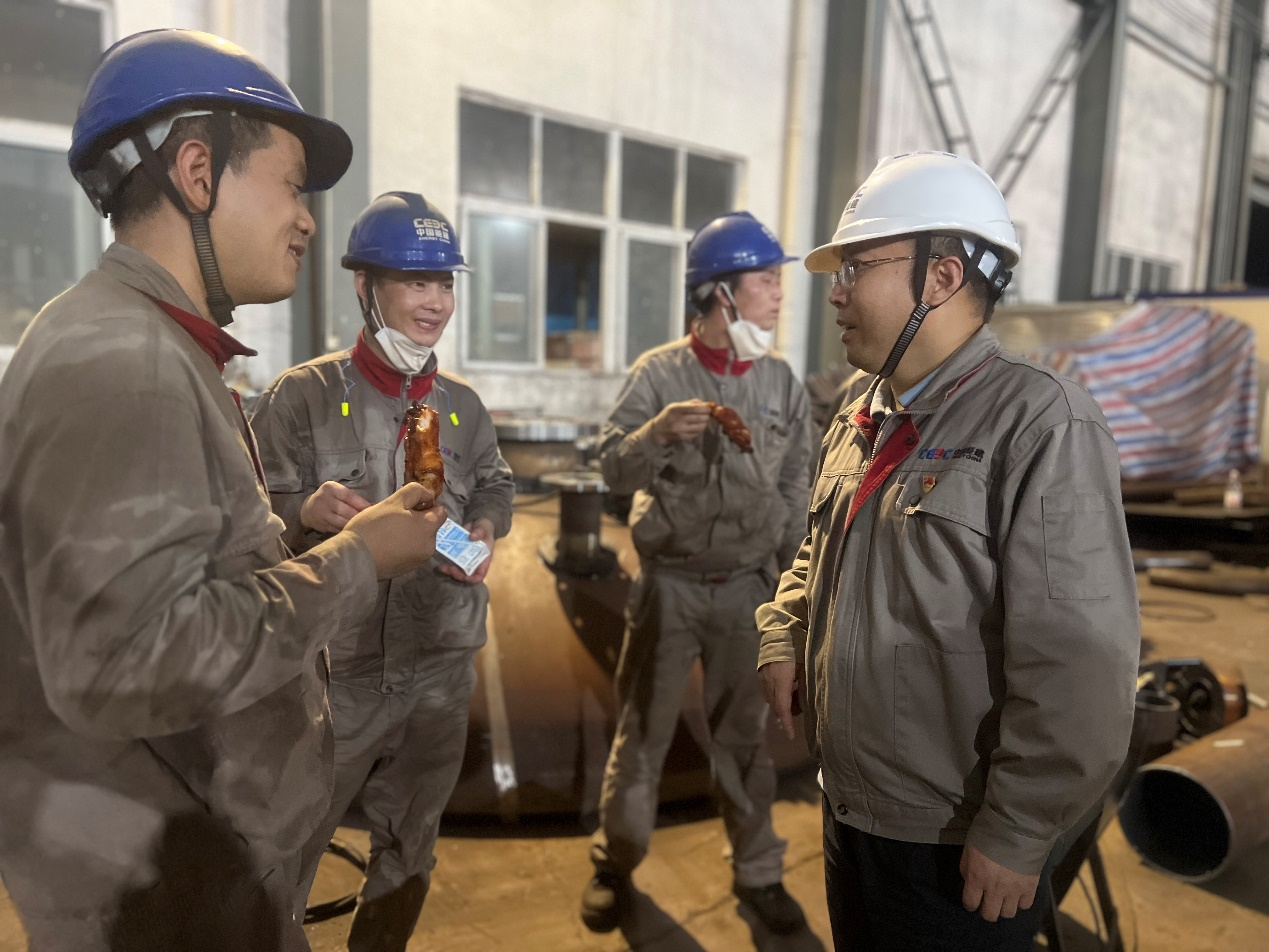 這時,“我”聞到了一股飯香,原來是領導帶著美食來看望“我”了,他親切的與工人師傅們交談,詢問生活與工作的情況,并對大家的辛勤付出表示感謝。