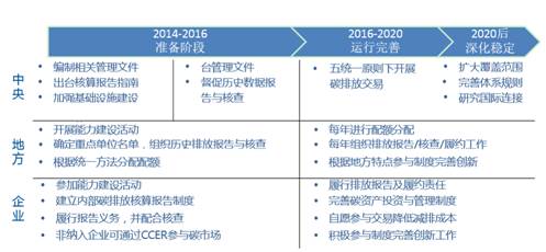 按照發(fā)改委的規(guī)劃,我國碳市場建設(shè)可分為前期準備階段(2014年-2016年)、運行完善階段(2016年-2020年)和全面實施階段(2020年以后)。